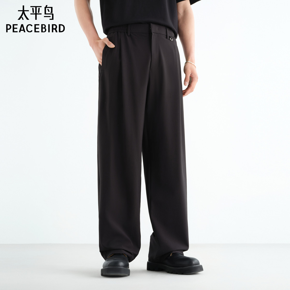 【四面弹】太平鸟男装休闲裤25夏新款cleanfit宽松直筒阔腿西裤