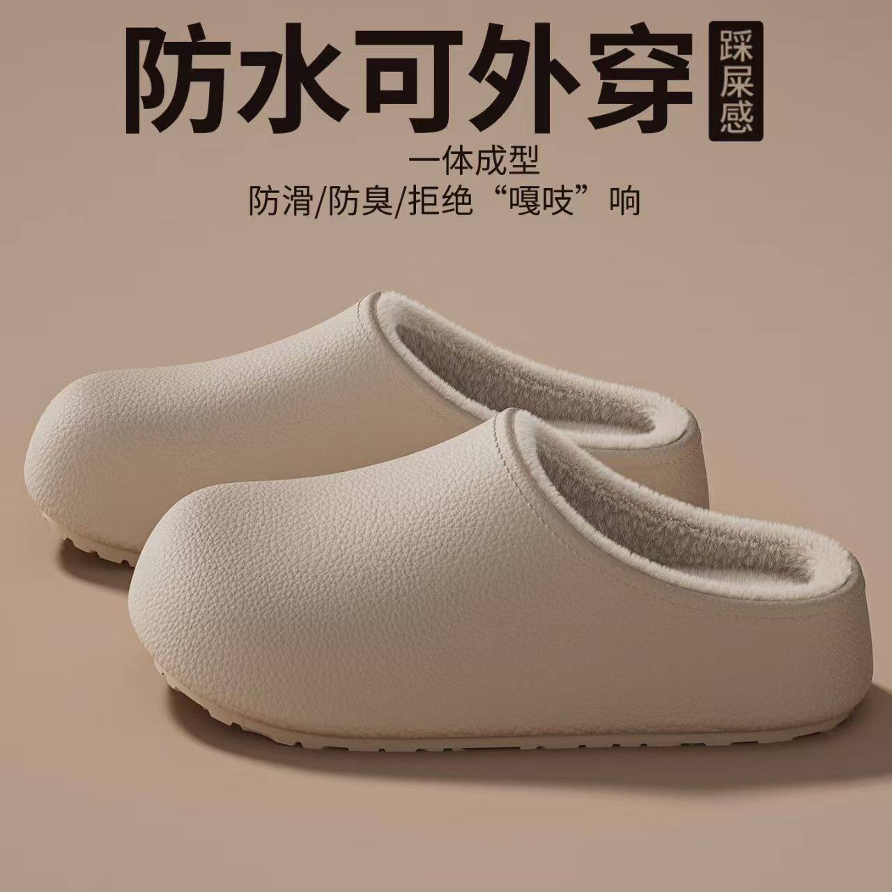 2026新款翻半包跟棉拖加绒保暖情侣外穿毛毛绒厚底防滑居家棉拖鞋
