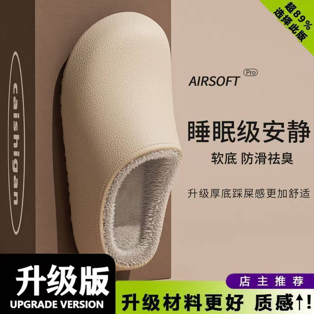 红豆踩屎感棉拖鞋女士秋冬季室内家居2025新款毛绒保暖情侣棉拖男