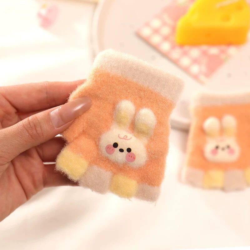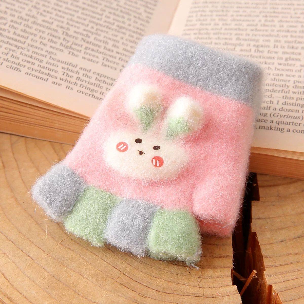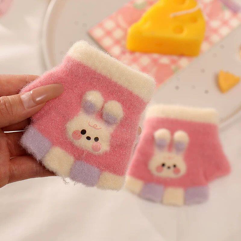 儿童手套半指翻盖冬天季保暖毛绒小学生女孩男童宝宝可爱露指写字