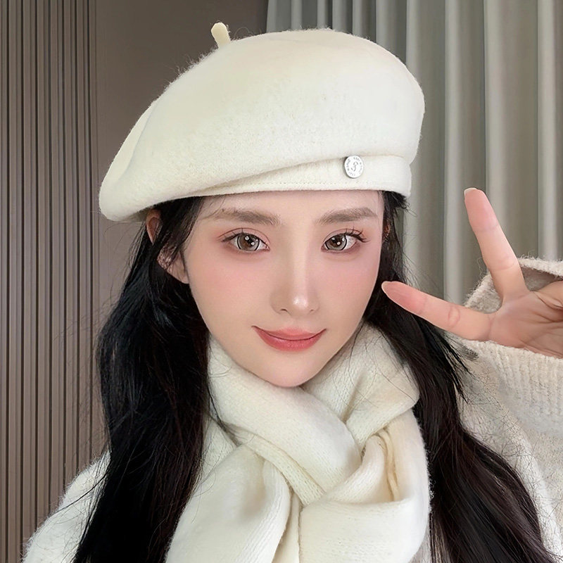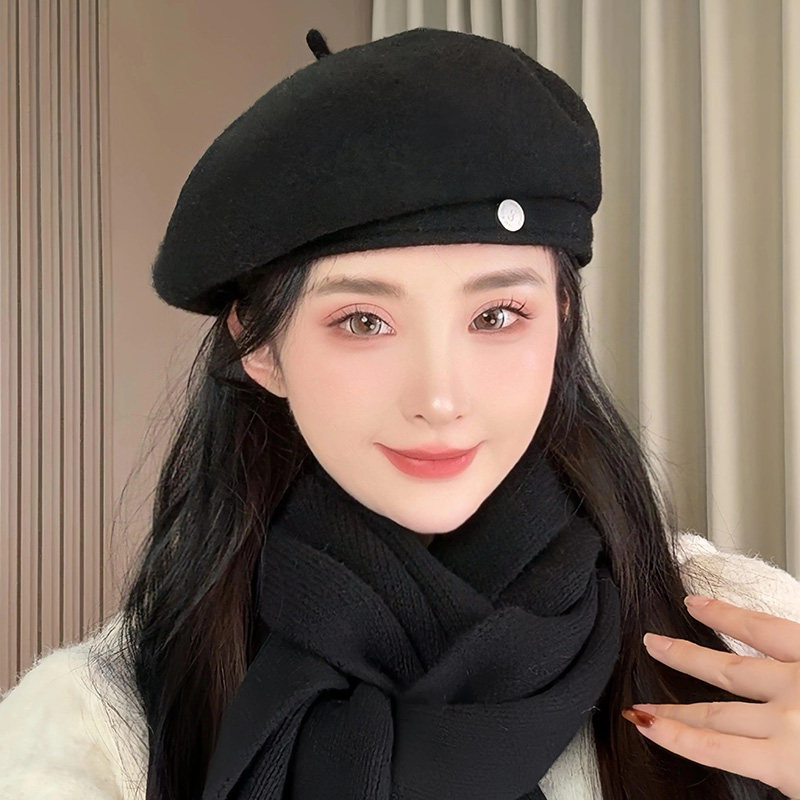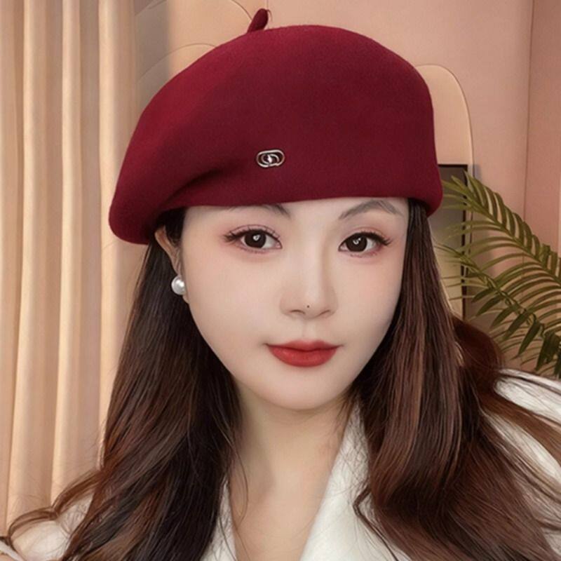 韩版气质保暖贝雷帽子女秋冬季羊毛呢时尚定型显脸小画家帽蓓蕾帽