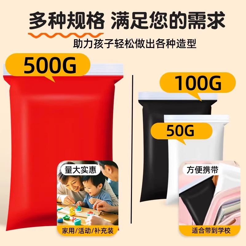 黑色超轻粘土500g克大包装幼儿园专用无毒橡皮泥儿童黏土小学生手工安全彩泥美术专用超级粘土100g泡泡太空泥