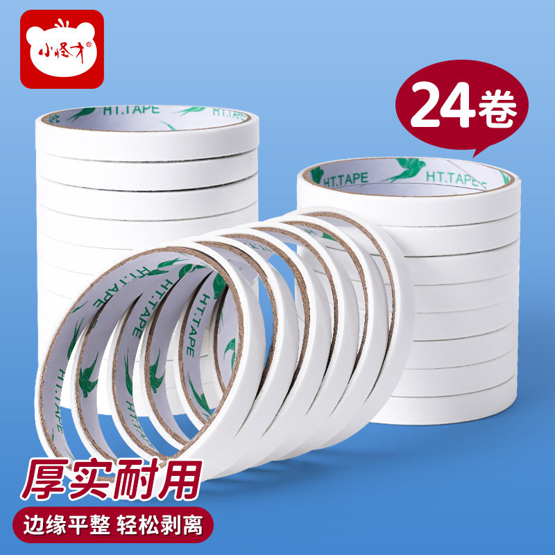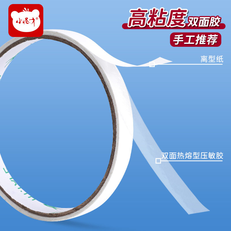 小怪才双面胶高粘度强力固定不留痕儿童手工两面双面胶棉纸双面宽胶带学生用手撕超薄透明批发文具办公用品