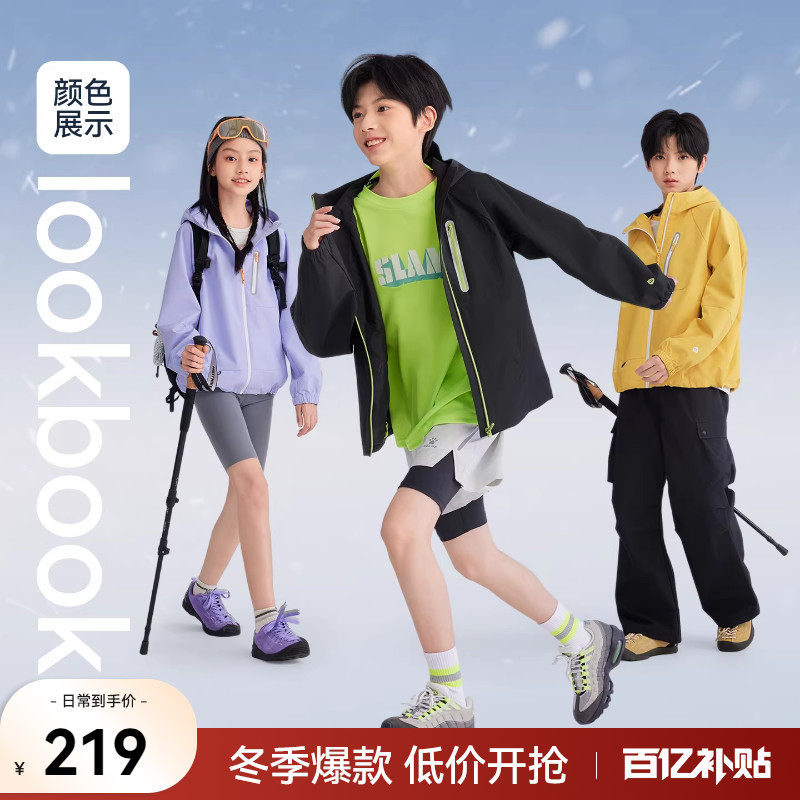 水孩儿童装外套加绒2025秋冬装新品三防女大童风衣男童红色上衣