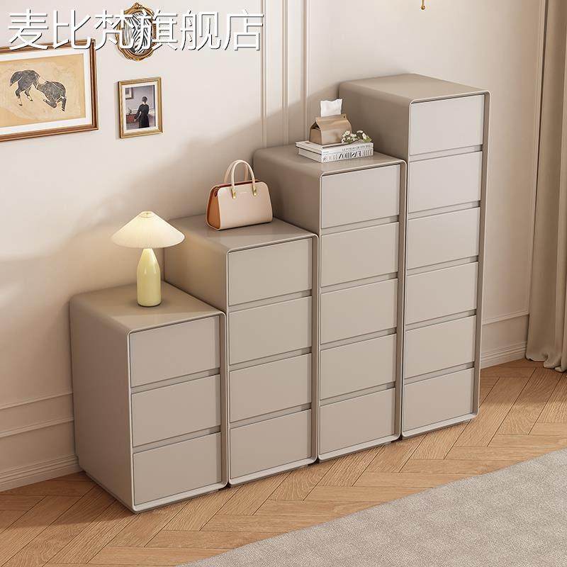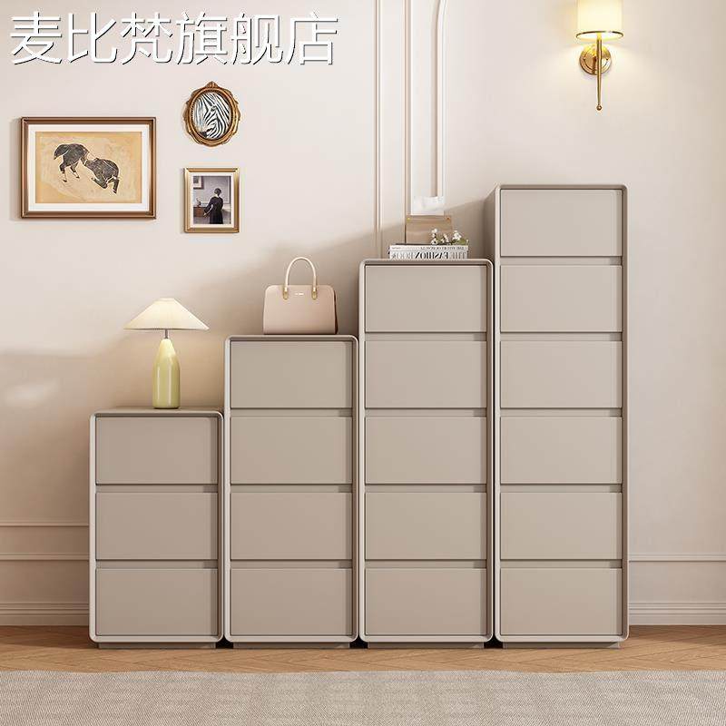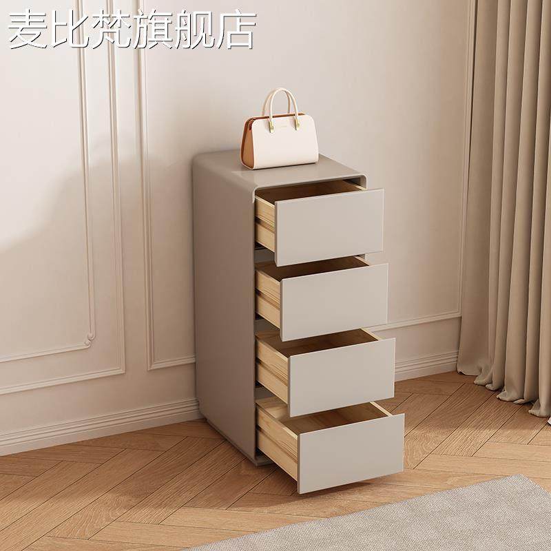 麦比梵超薄极窄实木斗柜轻奢高级感客厅收纳柜沙发边柜卧室多功能收纳柜摆件饰品床笠拉车