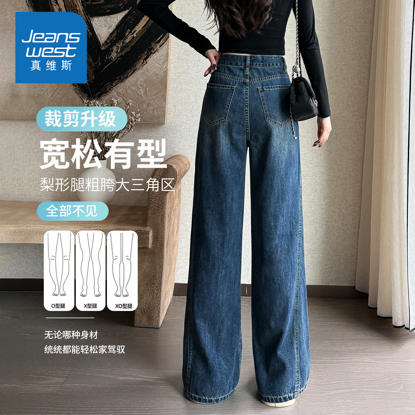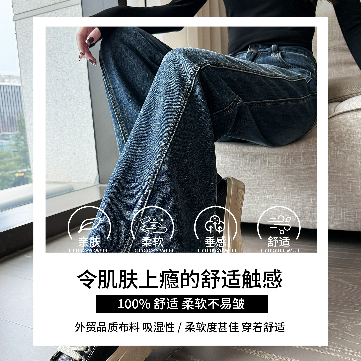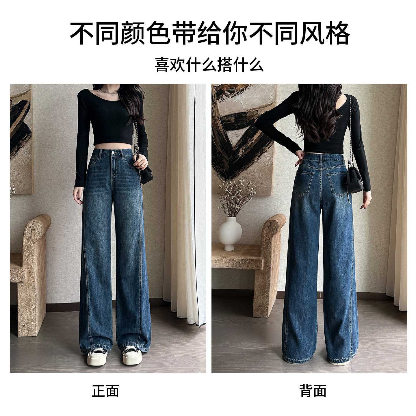 四面弹丹宁色牛仔阔腿裤25年新款宽松显瘦牛仔长裤89173
