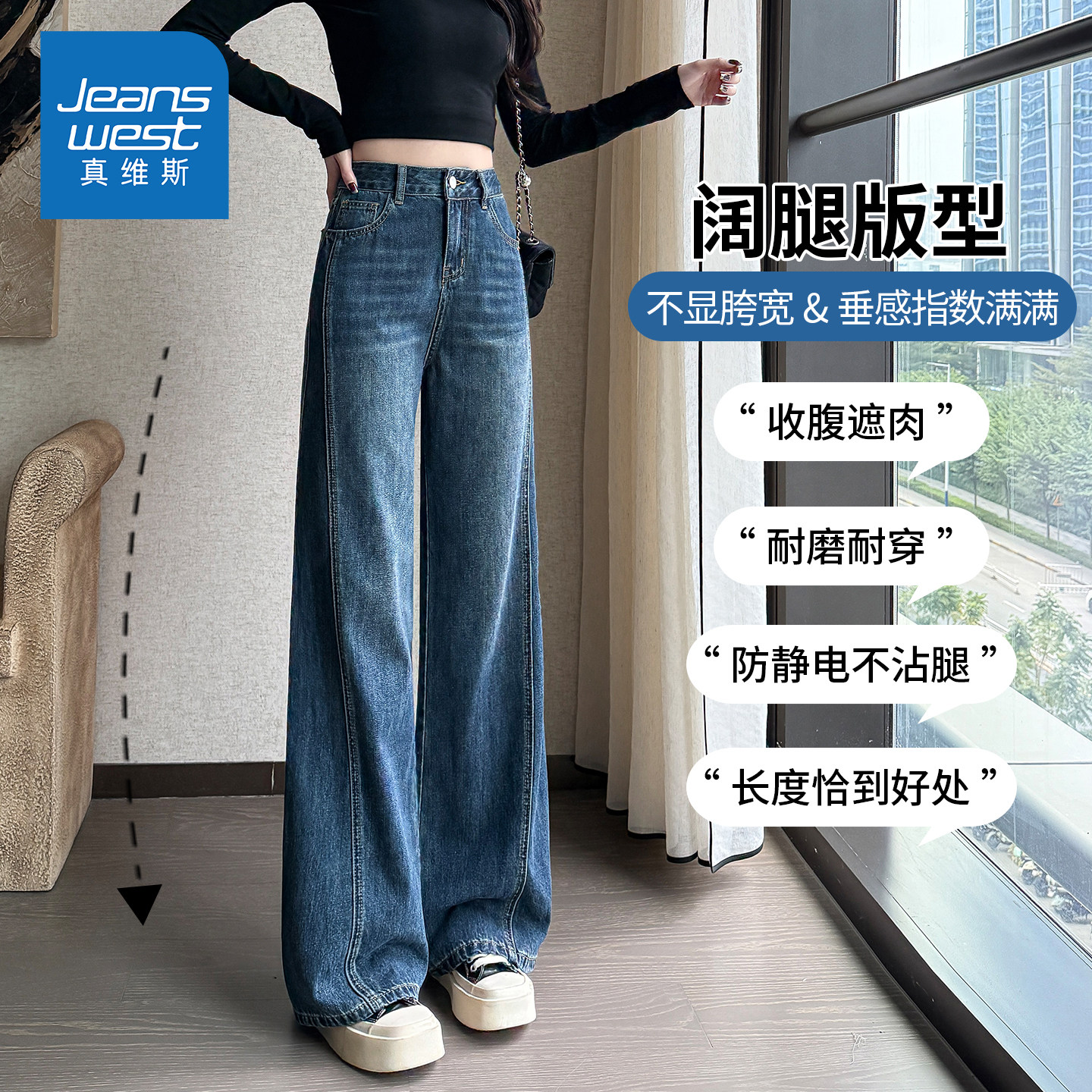 KZH真维斯高品质牛仔裤女秋季新款宽松微喇裤高腰显瘦阔腿长裤潮
