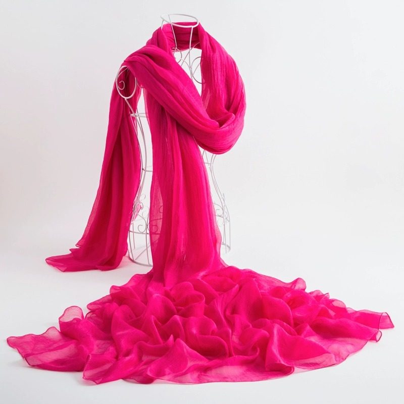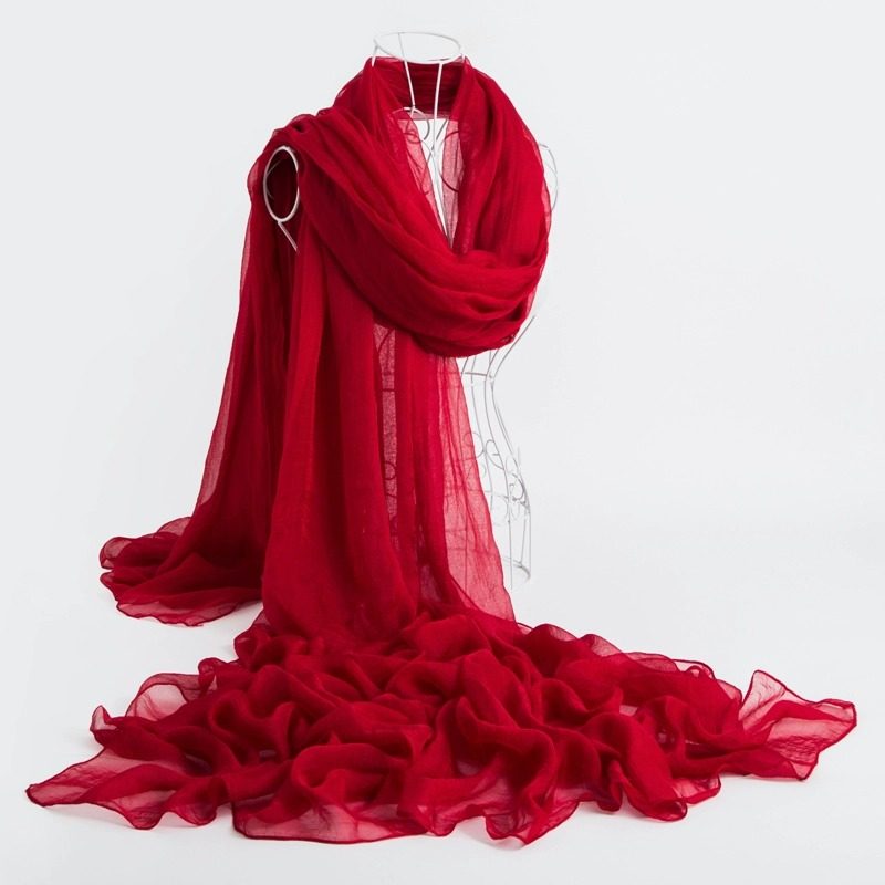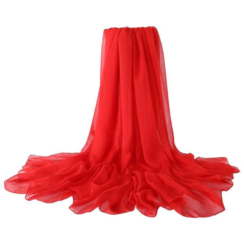 长款丝巾女超大薄围巾新款防晒百搭大红色拍照纱滩巾披肩多功能