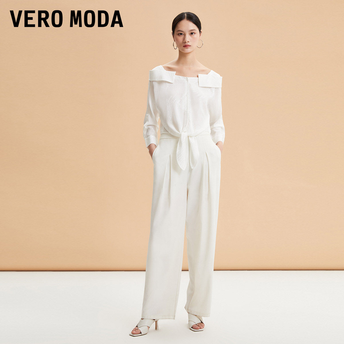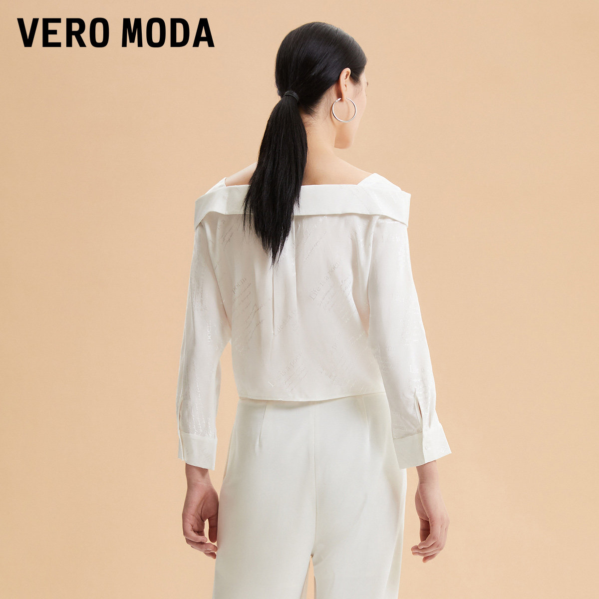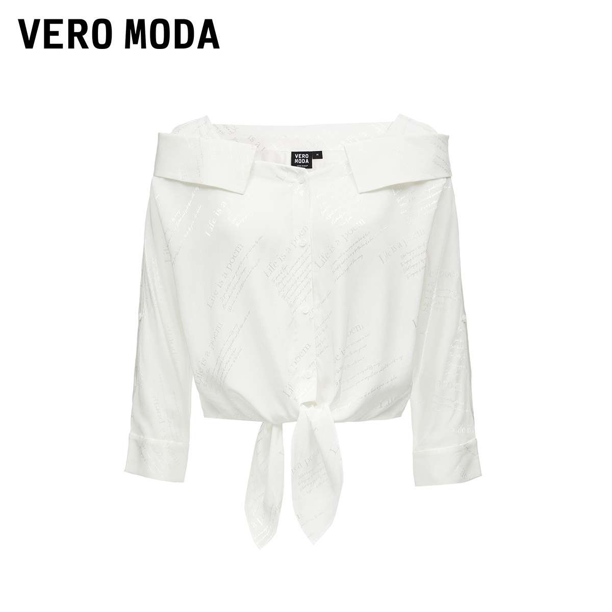 Vero Moda奥莱衬衫女2025秋季新款暗纹字母印花下摆系带上衣优雅