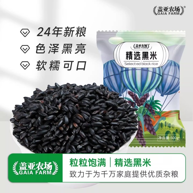 盖亚农场东北精选黑米500g*3袋五谷杂粮无染色糙米饭