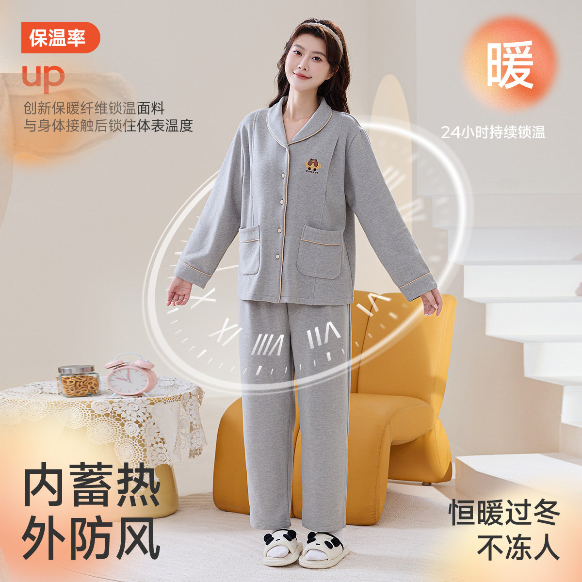 婧麒月子服孕妇睡衣冬季外穿加绒保暖加厚产妇哺乳喂奶家居服套装