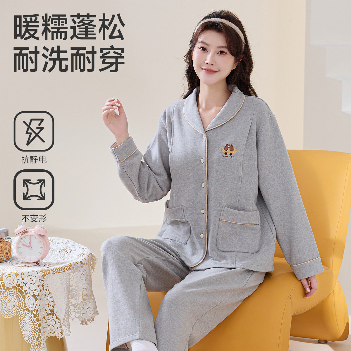 纯棉月子服产后冬加厚款产妇孕期哺乳孕妇睡衣秋冬季喂奶家居服