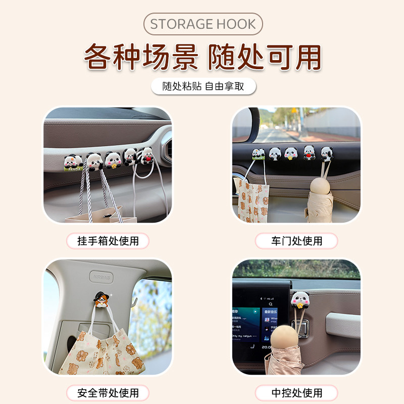 汽车创意挂钩可爱熊猫副驾驶手套箱挂钩收纳置物前排挂勾内饰品
