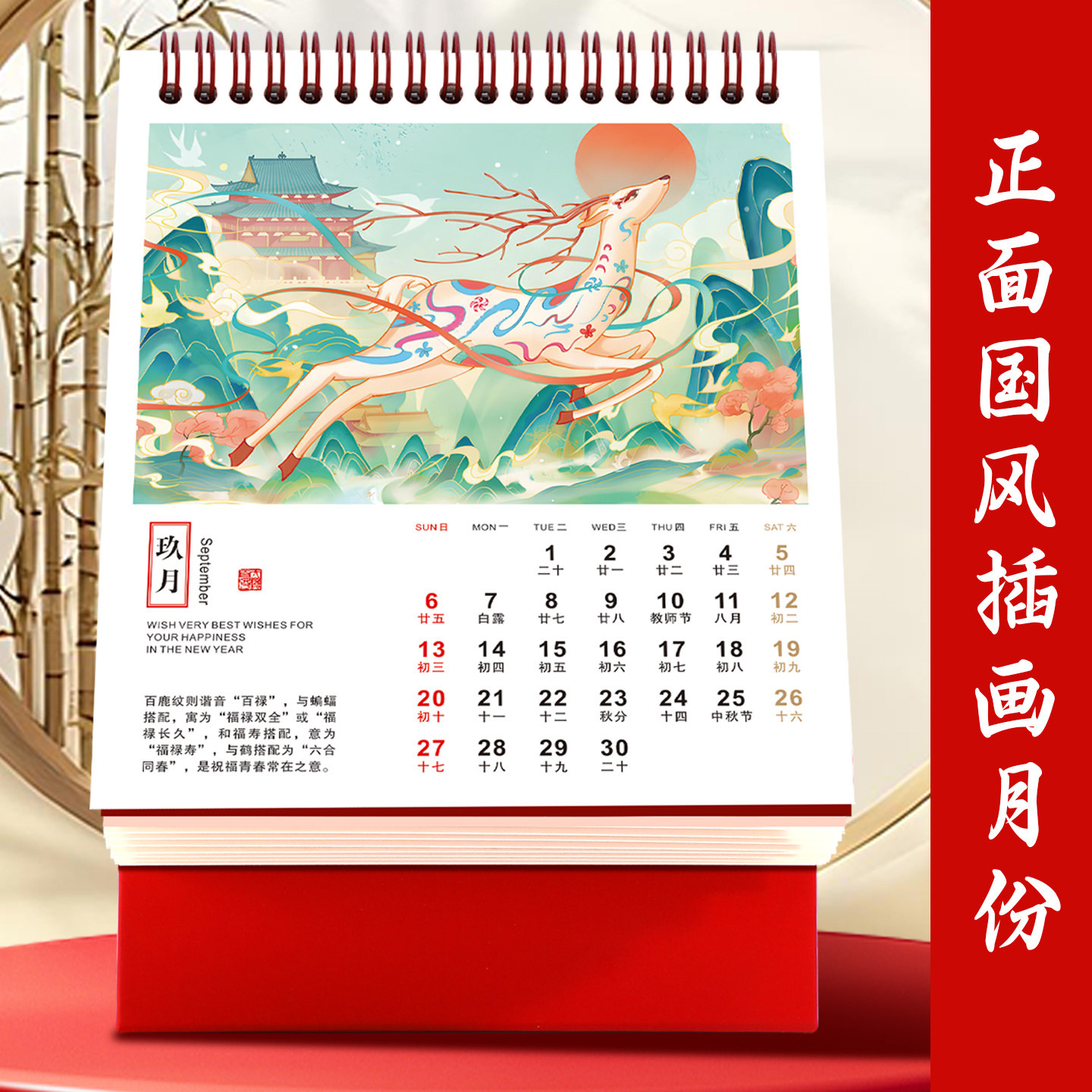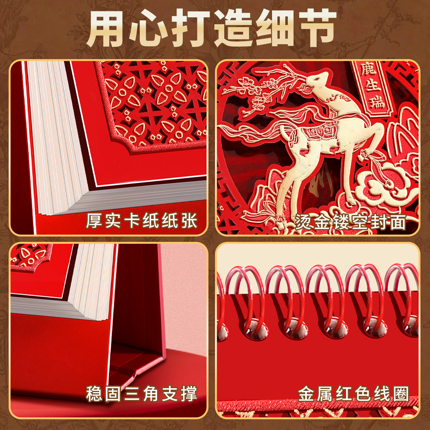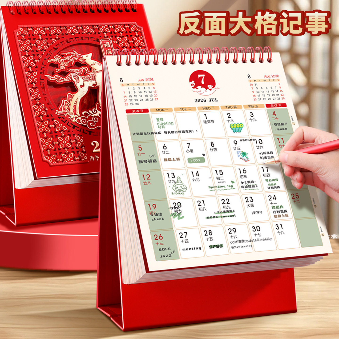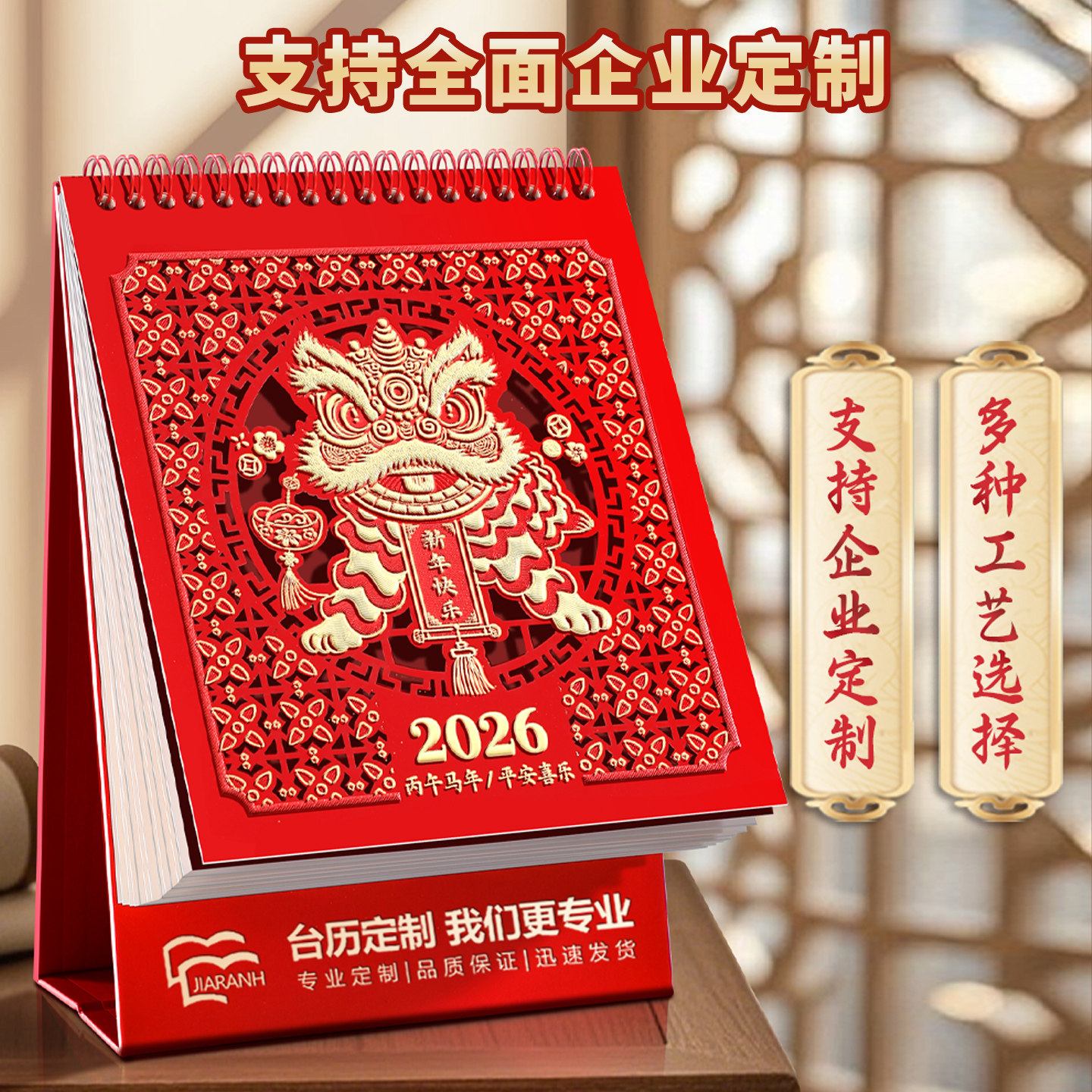 喜庆镂空台历竖款2026年新款马年红色烫金日历365天桌面摆件大格子记事本月历计划本企业广告位定制印logo