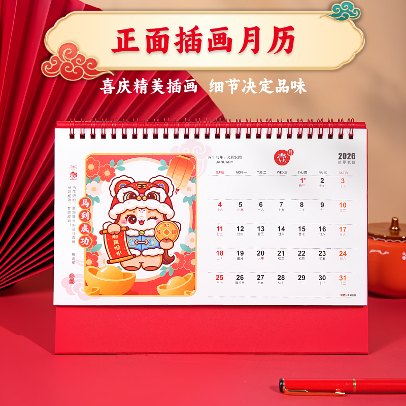 台历2026年新款日历定制logo创意简约小清新韩式办公年历个性中国风桌面摆件商务工作记事计划本订制广告月历