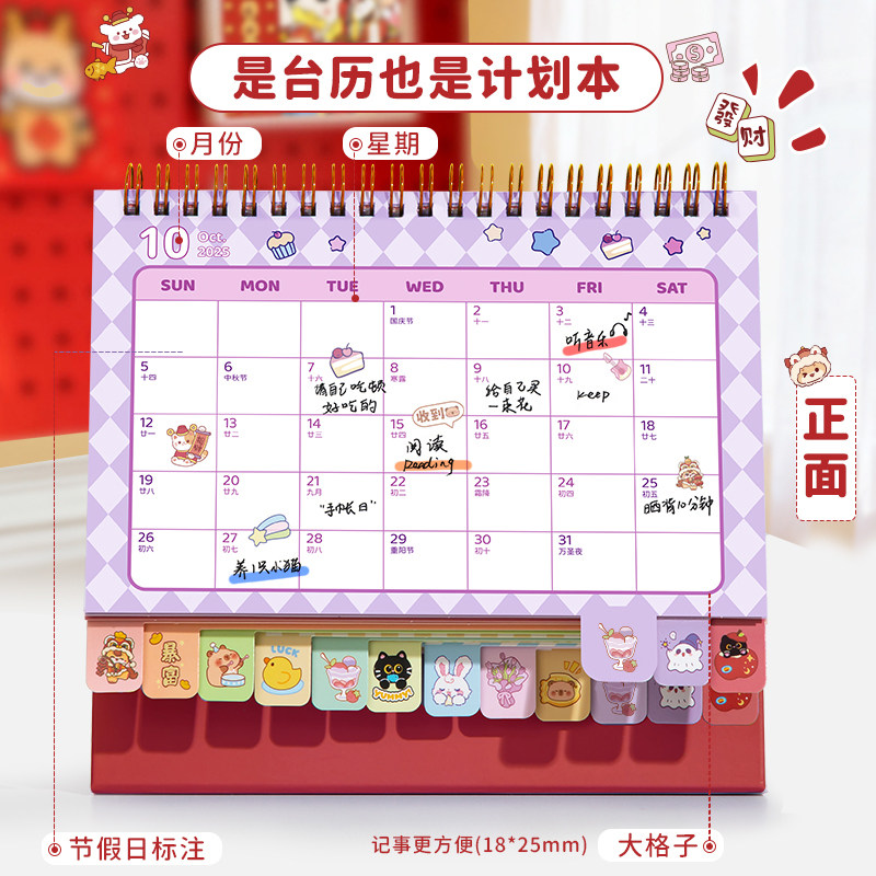 2026年新款台历日历定制马年新年卡通创意迷你办公室桌面万年历摆件可爱月历倒计时记事本活动日程计划表周历