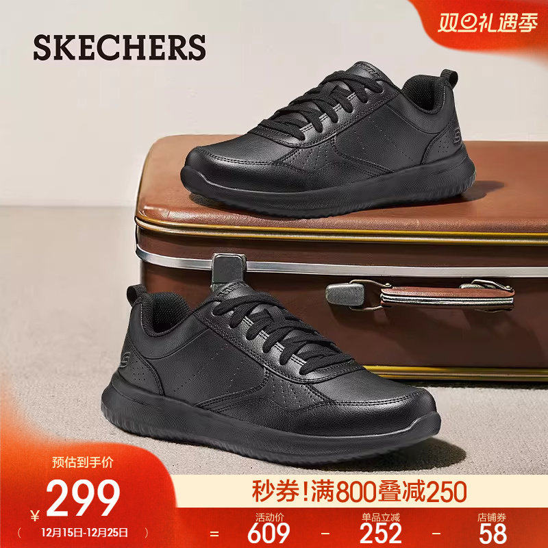 斯凯奇秋冬新款男子舒适休闲皮鞋商务鞋通勤鞋德比鞋软底上班板鞋
