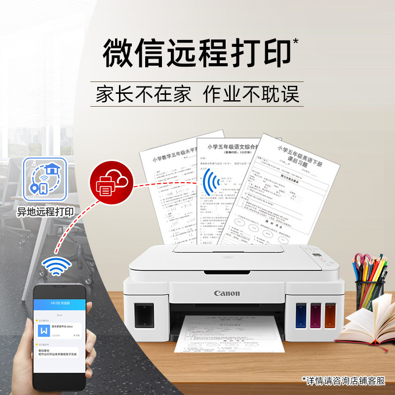 佳能G3810w无线家用小型打印机可连手机连供墨仓式彩色喷墨复印扫描一体机wifi学生作业家庭A4照片办公专用