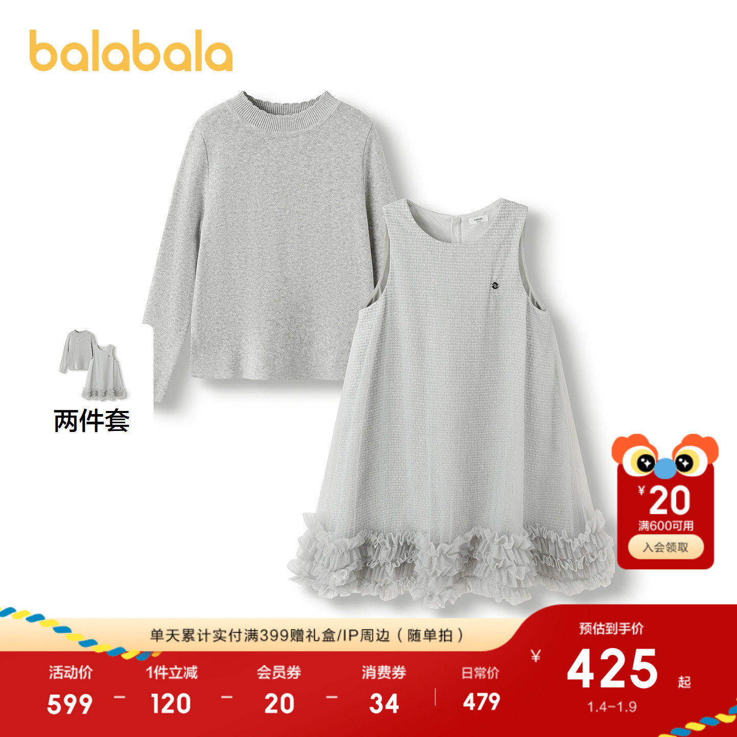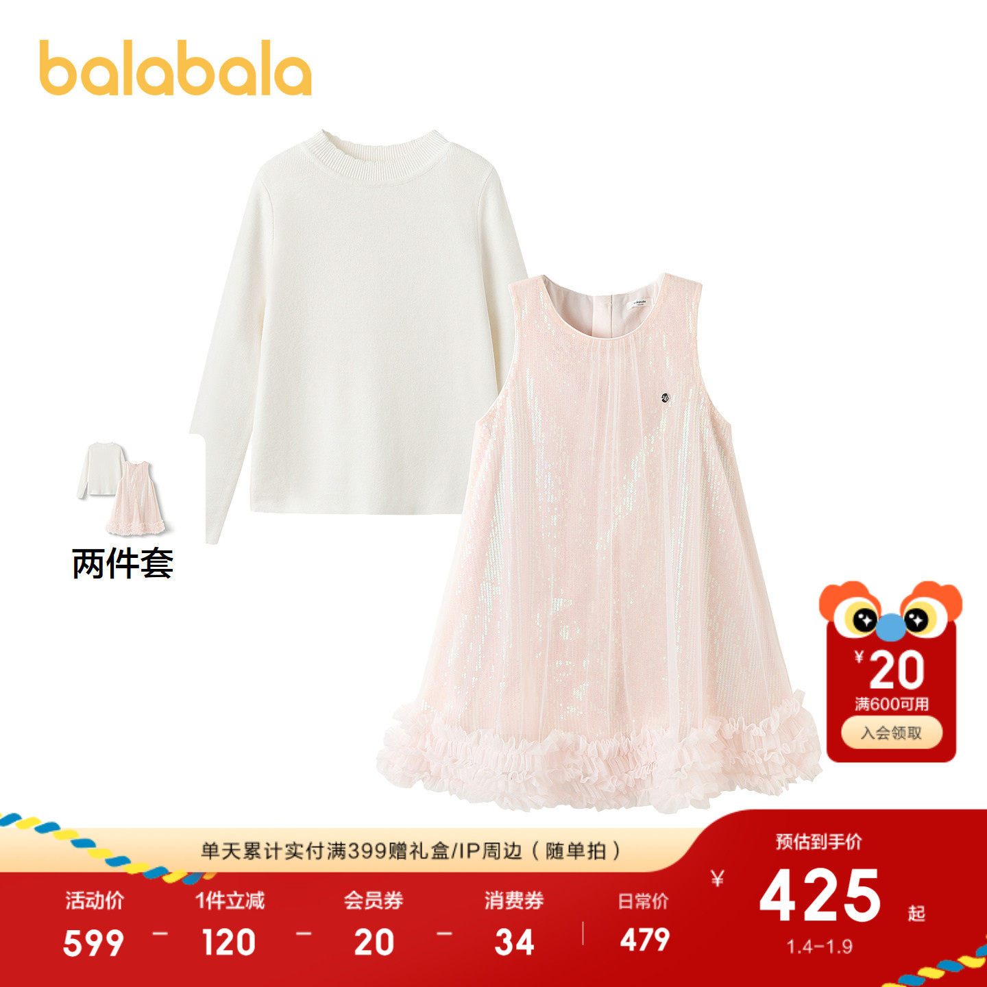 【商场同款】巴拉巴拉儿童套装女童2件套新款童装2025秋冬背心裙