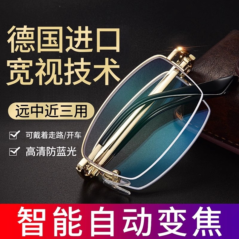 高档老花眼镜中老年高清老花镜男防蓝光老年人女多功能自动变焦镜