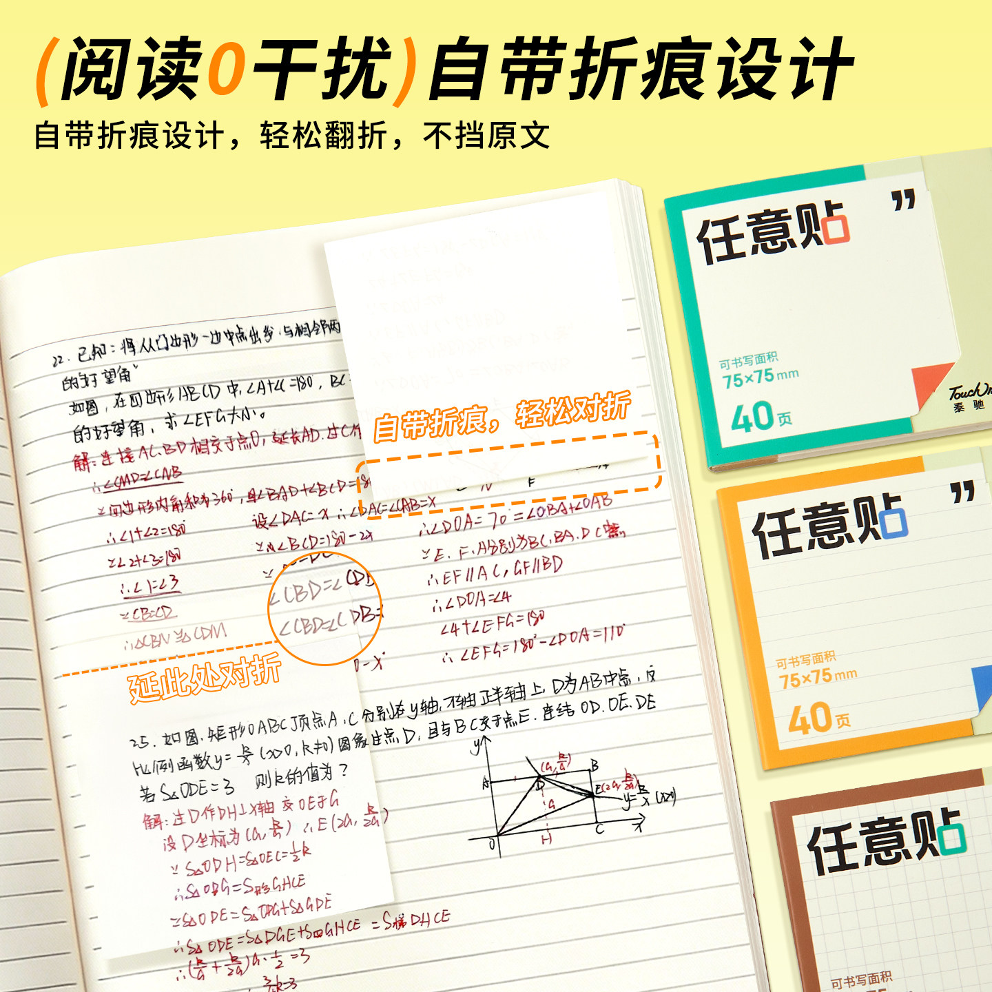 【课堂笔记】扩张便利贴不遮挡有粘性透明便签纸任意贴初中生专用可折叠学生考研用笔记标记错题便利贴不留痕