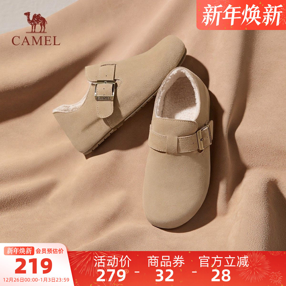 骆驼女鞋2025新款复古真皮圆头百搭休闲平底单鞋穆勒鞋子女勃肯鞋