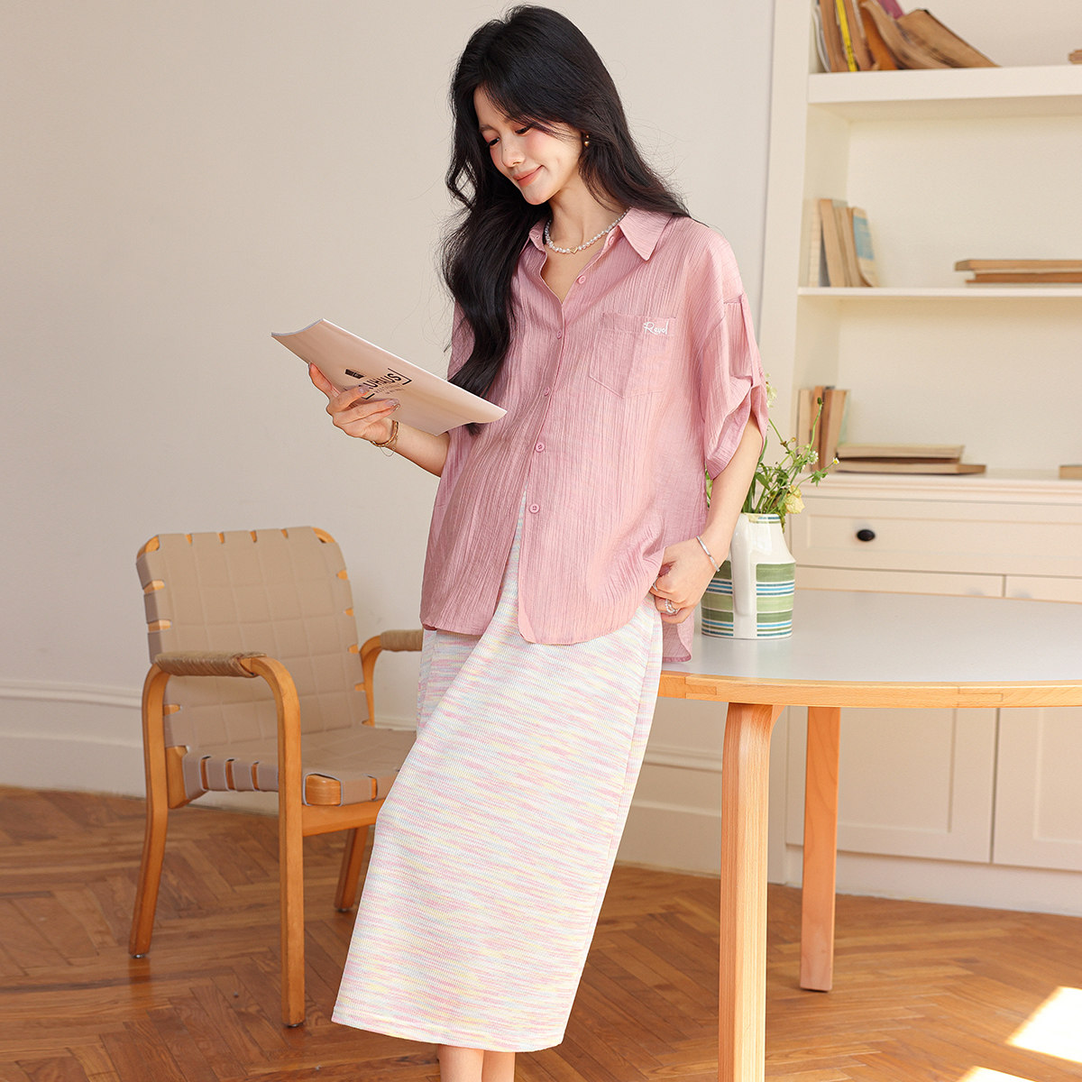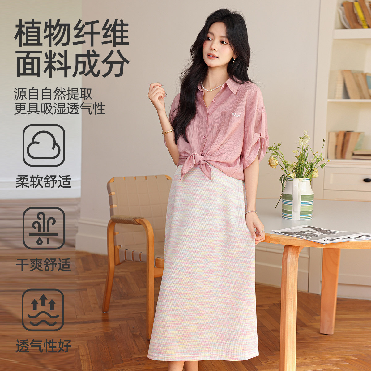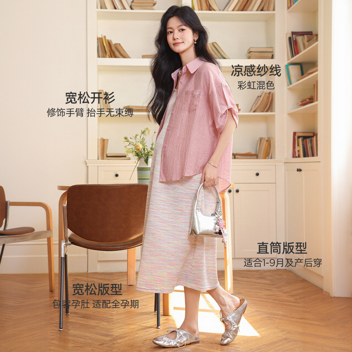 婧麒孕妇装春秋季2025新款时尚吊带连衣裙孕期宽松显瘦衬衫女套装