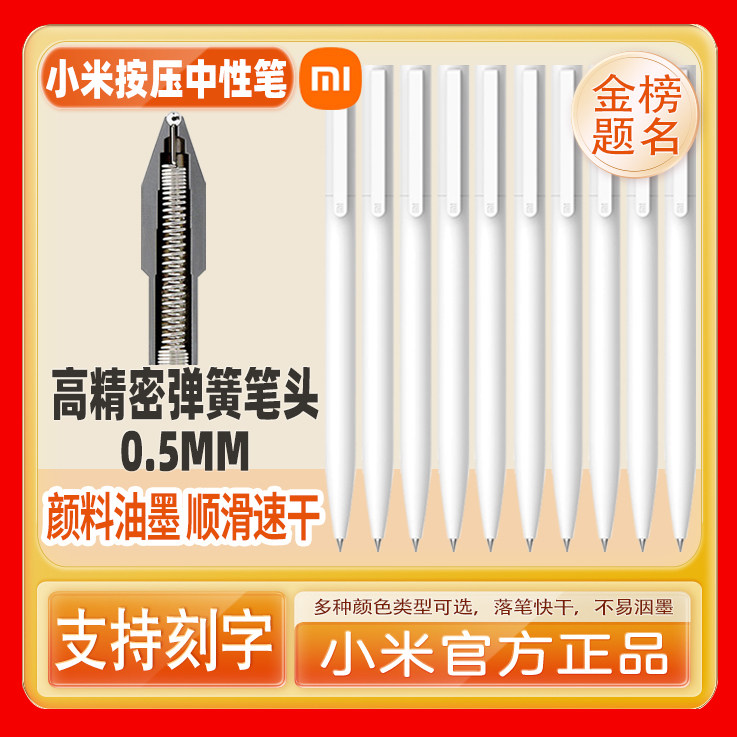 小米巨能写中性笔按压式0.5mm签字笔考试替换笔芯速干雕刻圆珠笔