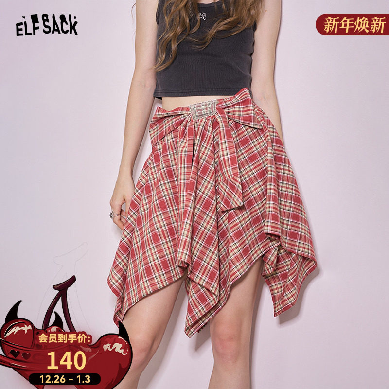 妖精的口袋韩系不规则格子半身裙女2025年秋季新款小众设计感短裙