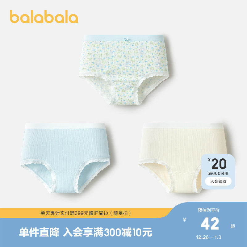 巴拉巴拉女童内裤棉a类儿童三角短裤子亲肤中大童小童宝宝三条装