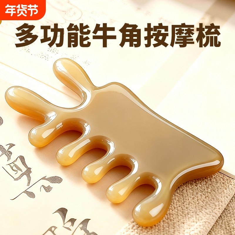 天然牛角按摩梳四合一头部头皮经络疏通神器脸部面部刮痧板提拉