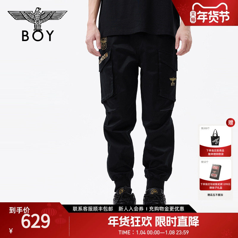 BOYLONDON春季情侣款大口袋潮牌休闲工装梭织长裤N34900