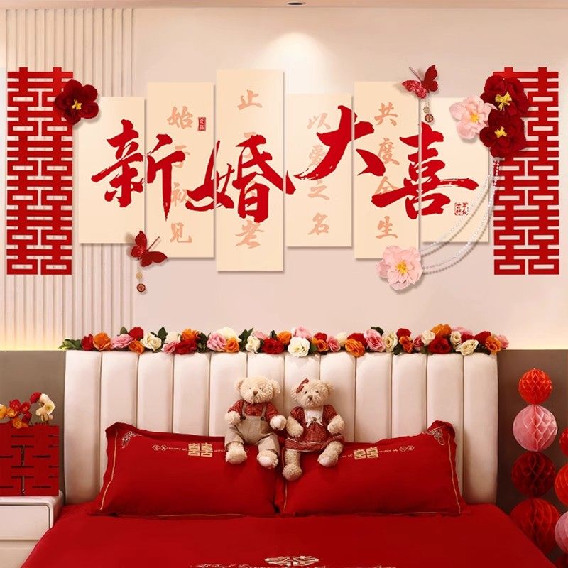 婚房布置套装婚礼结婚男女方闺房卧室床头装饰酒店房间氛围拉花