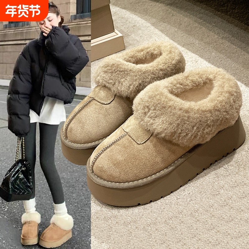 低帮厚底雪地靴女2025新款冬季懒人一脚蹬毛毛棉鞋加绒加厚女鞋子