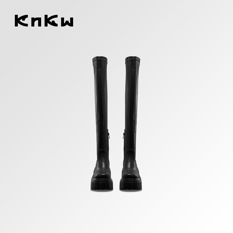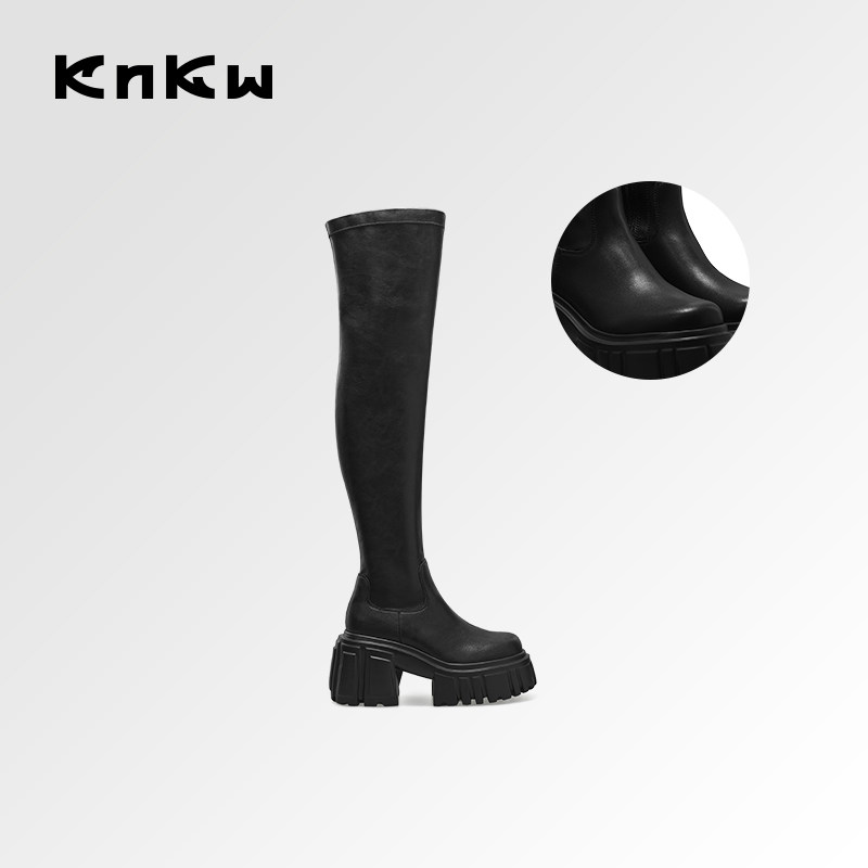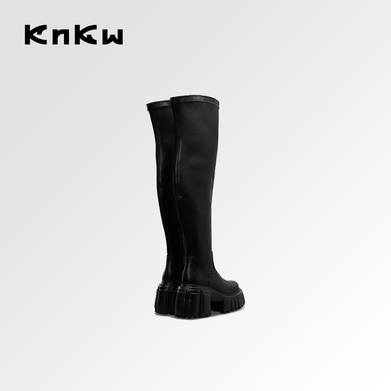 knkw新款过膝长筒靴2025秋冬女靴软皮厚底靴鞋高级小众靴子女长靴