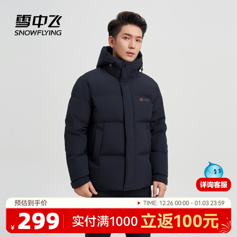 雪中飞2025冬新款男士短款羽绒服连帽简约百搭商务保暖休闲高级