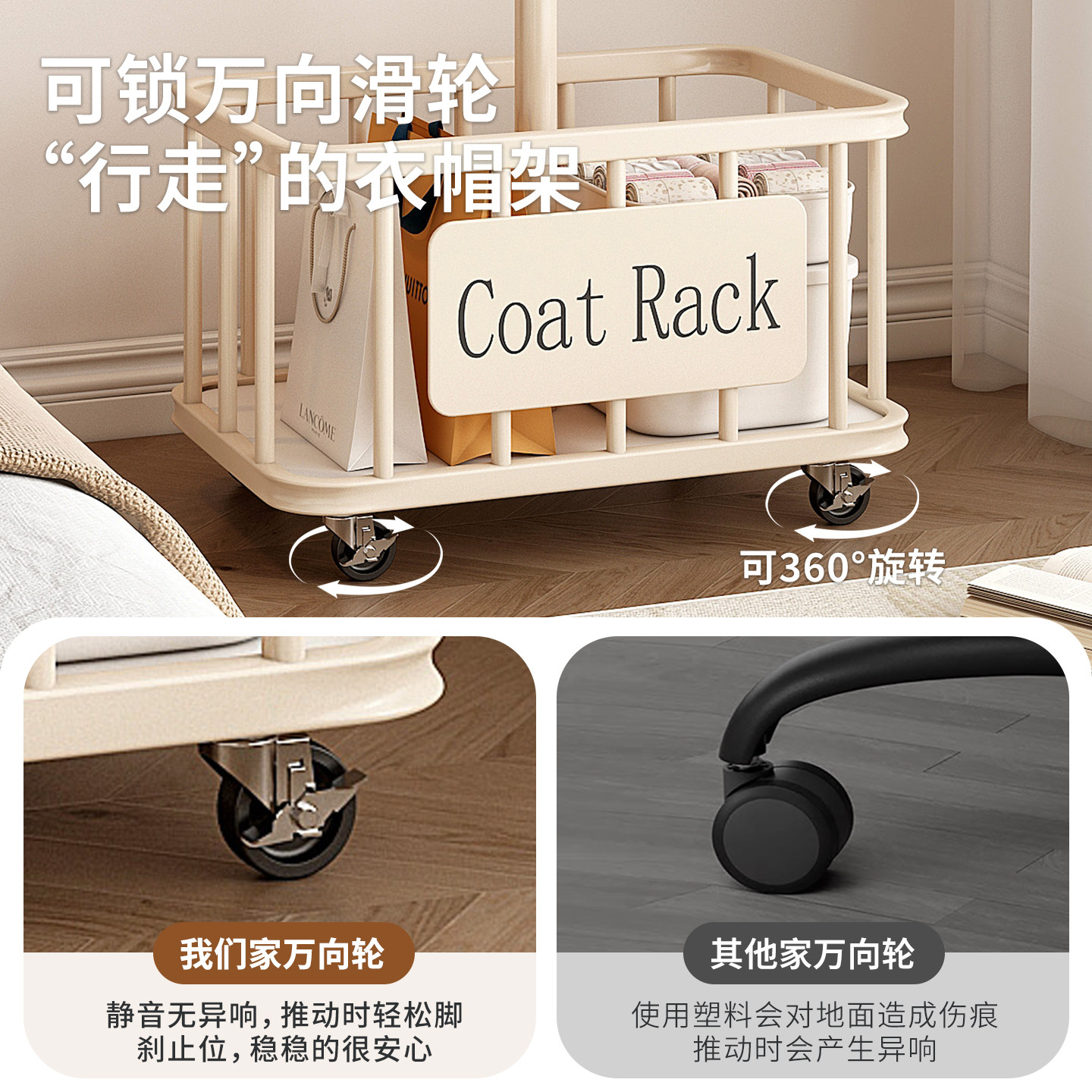 衣架落地卧室奶油风挂衣架家用铁艺简易晾衣架室内客厅移动衣帽架