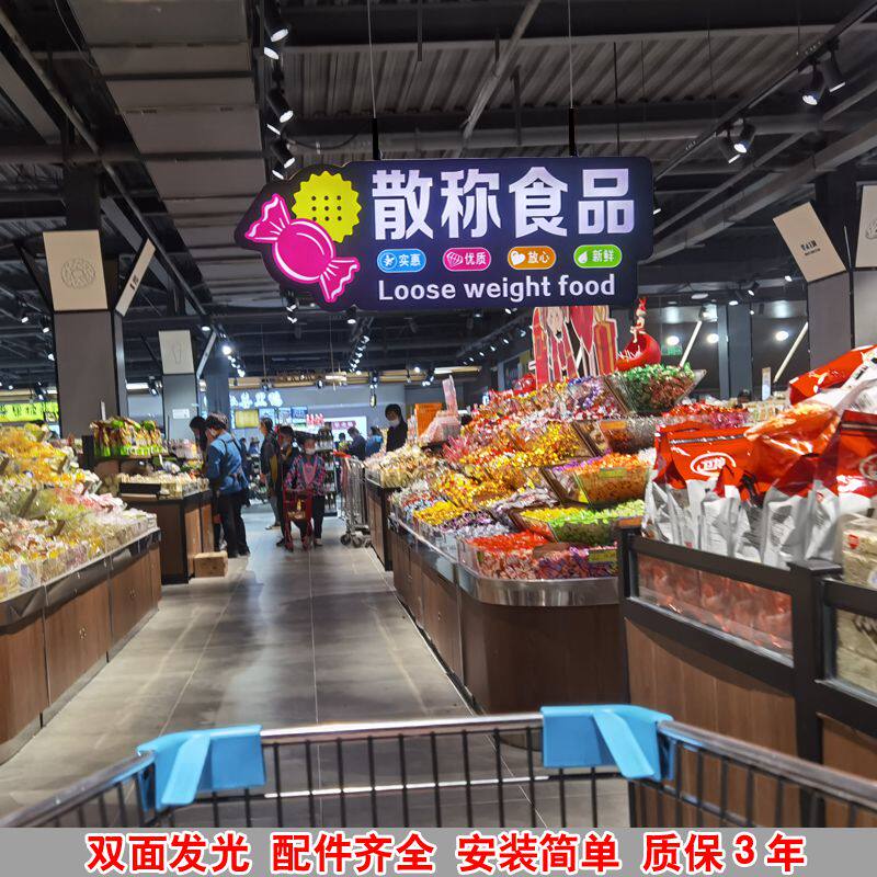 极速超市区域发光指示q牌超市分类标识牌商场连锁超市分区发光吊