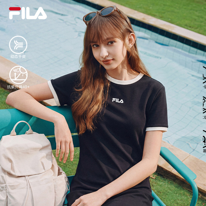 FILA 斐乐官方女子连衣裙2026夏季新款时尚休闲防晒运动修身T恤裙