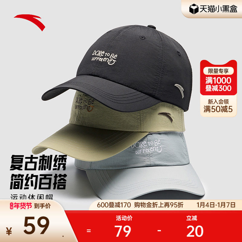 安踏运动帽跑步遮阳帽休闲百搭简约纯色鸭舌帽字母刺绣棒球帽子