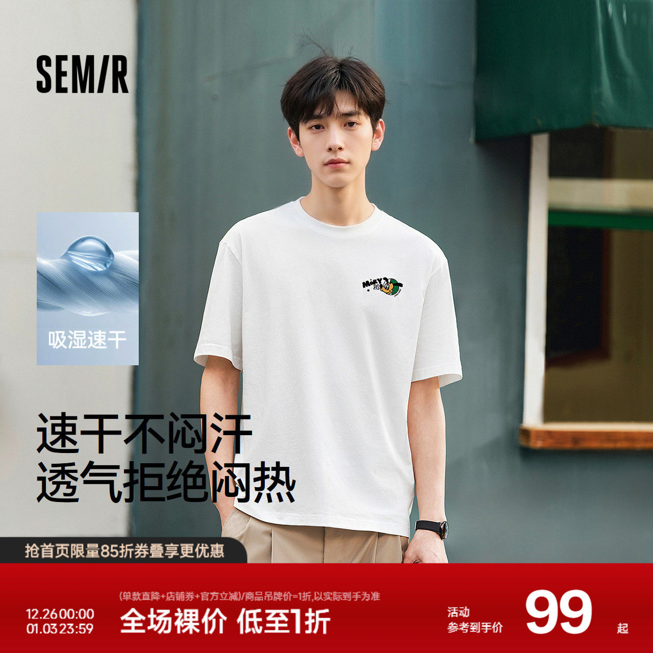 森马短袖T恤男吸湿速干透气情侣上衣2025新款潮流印花夏装青少年