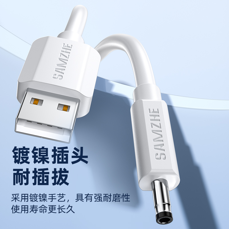 山泽usb转dc适用于foreo露娜洁面luna洗脸仪mini2圆孔玩具电源数据充电线器3.5mm口通用圆头台灯音响箱小风扇