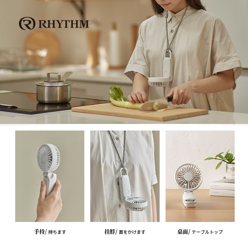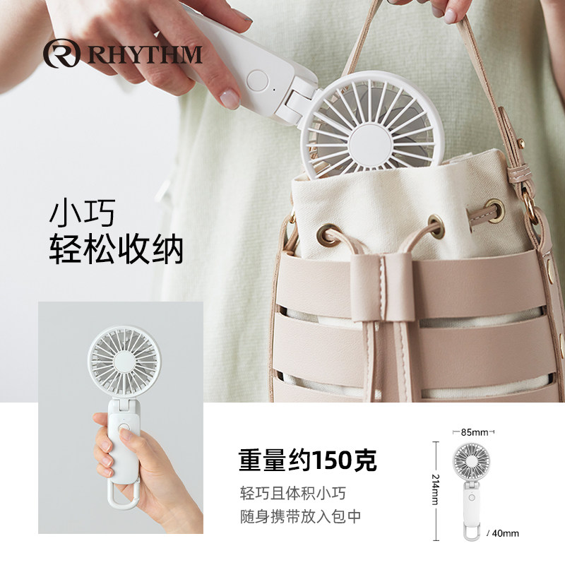 RHYTHM丽声手持小风扇学生宿舍超长续航超静音桌面挂脖吹辅食usb风扇便携式随身2026新款超静音无声超长续航