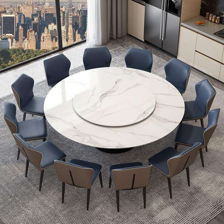 佛山酒店圆形大理石岩板餐桌家用高级感吃饭厅桌8-10人带转盘椅子