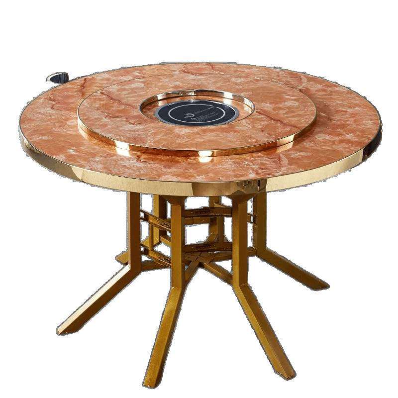 餐桌圆桌轻奢大理石火锅大圆桌子家用餐桌椅组合圆形折叠实木10人