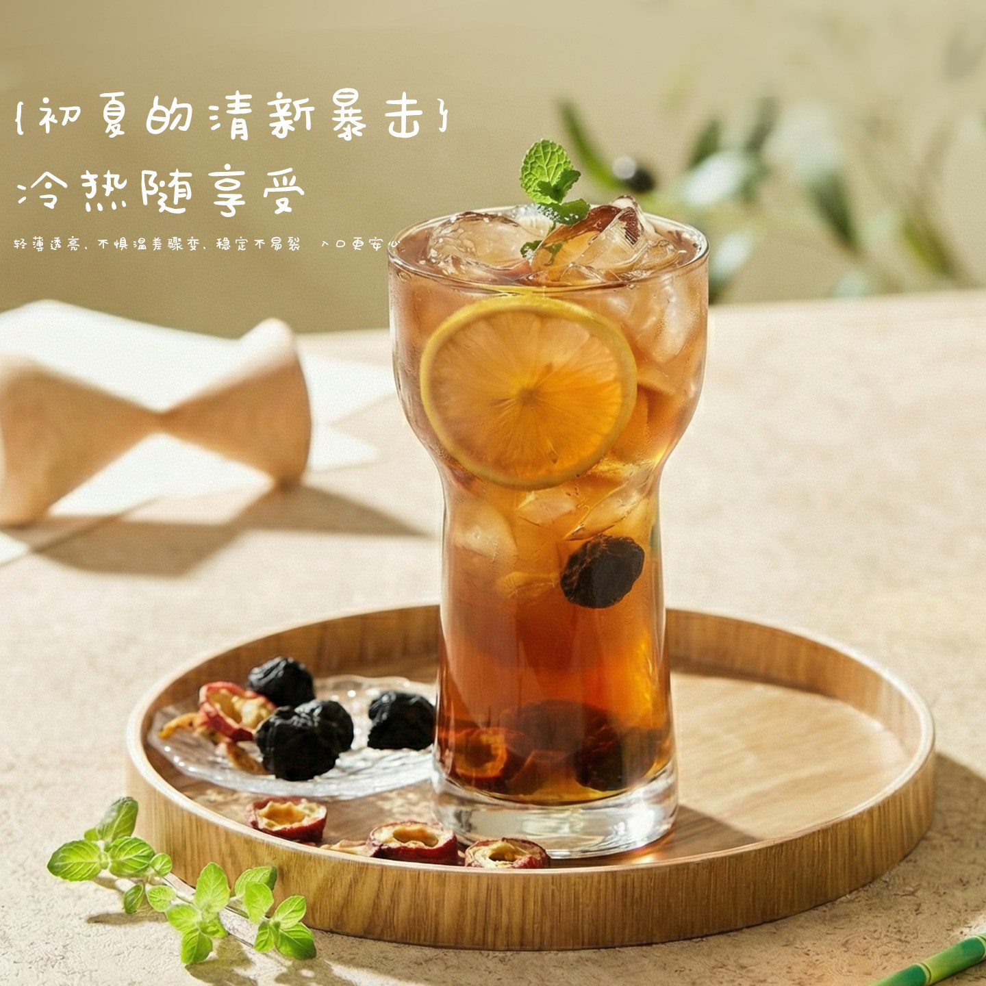 小众复古矮脚收腰玻璃杯ins风美式咖啡杯特调饮品杯冷饮杯果汁杯