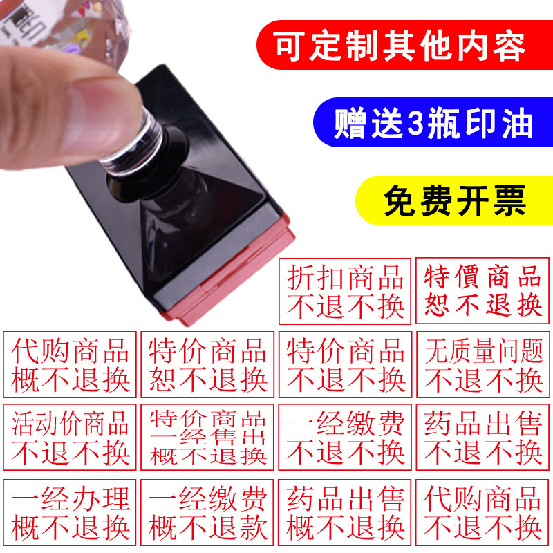 代购商品不退不换特价商品贵重商品一经办理缴费概换退款光敏印章活动特价商品药品售出定制定金概换章印定制
