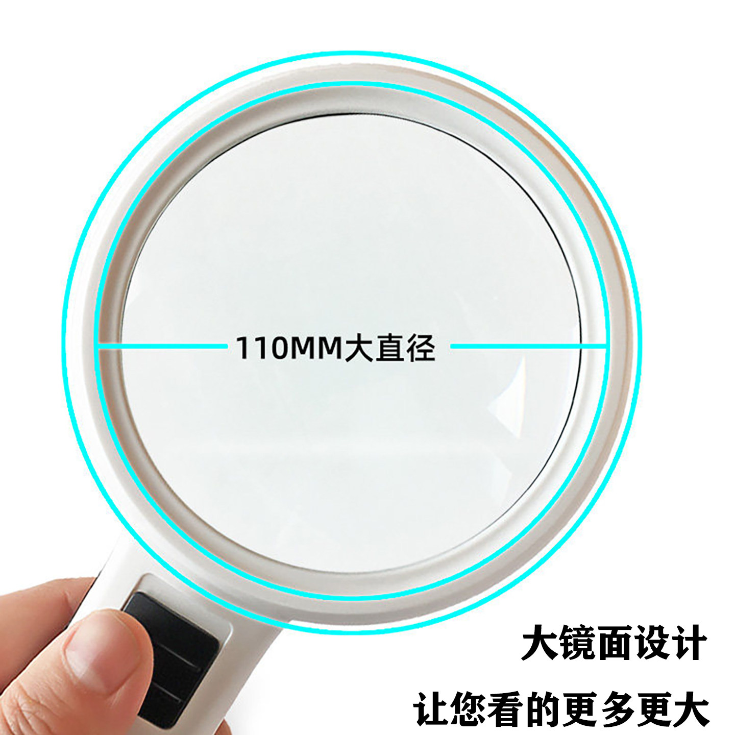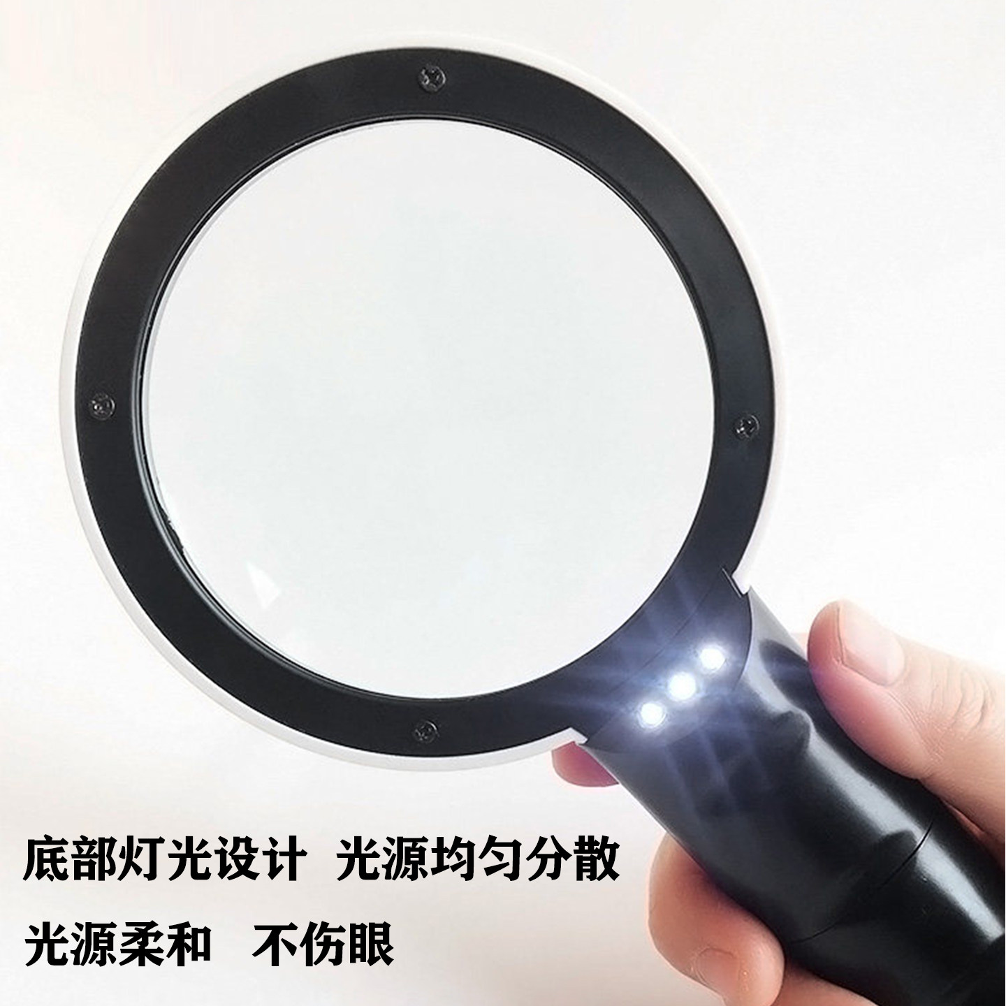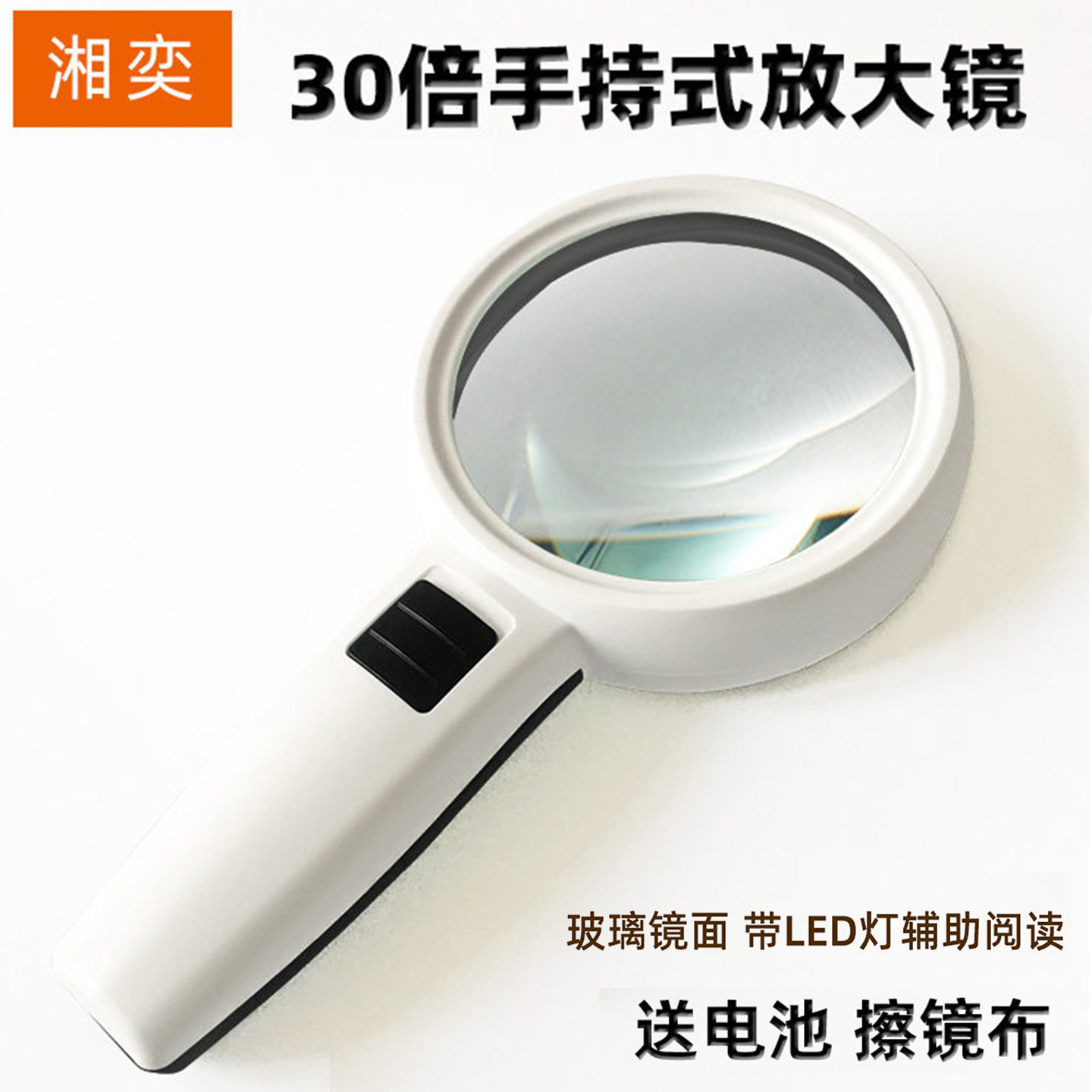 湘奕高清正品30倍手持放大镜带LED灯高清高倍儿童小学生老年用看书老人阅读维修100扩大镜便携式1000特大60