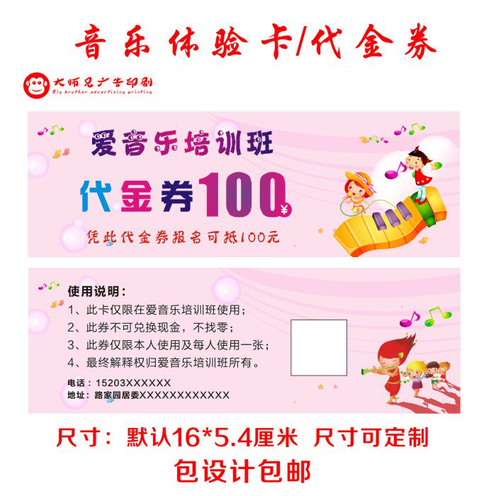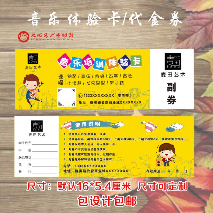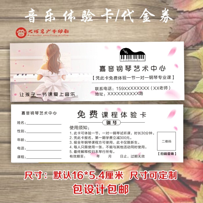 音乐钢琴吉他古筝民乐培训班体验卡试课卡代金券免费设计优惠券