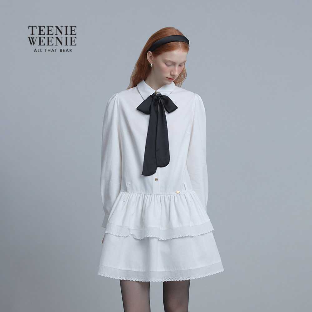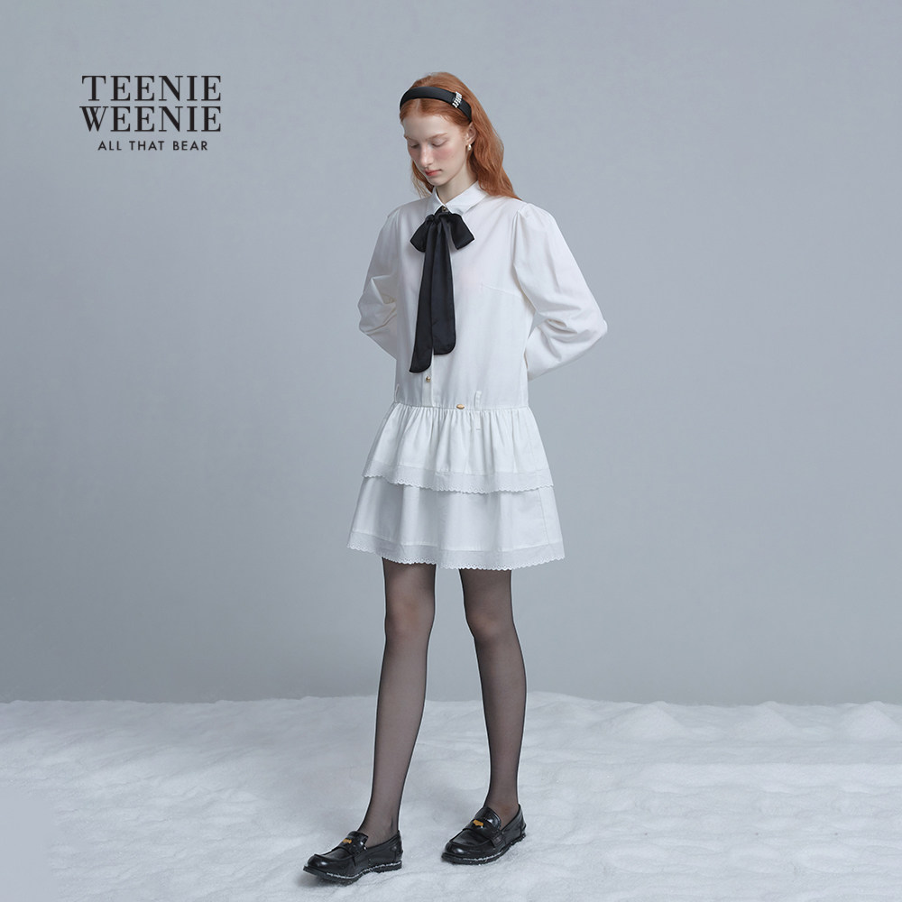 TeenieWeenie小熊女装连衣裙25年冬新款时尚宽松舒适衬衫型中长裙